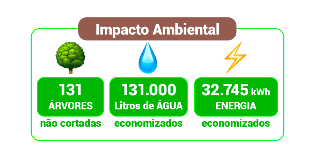 A captação de recursos mostra que a cultura de reaproveitamento está consolidada, principalmente no ambiente administrativo, onde o papel é coletado. No entanto, a operação também identifica outras oportunidades de reciclagem, como a inserção de papelões e estruturas metálicas usados nas embalagens de equipamentos e outros materiais.